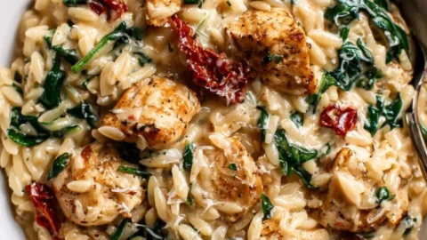 Imagine stepping into a cozy Italian trattoria in the heart of Tuscany, where the air is filled with the aroma of garlic, sun-dried tomatoes, and fresh herbs. Now, picture recreating that exact experience in your own kitchen without the hassle of reservations or hefty bills. That’s the magic of this Creamy Tuscan Orzo recipe. This dish brings the essence of restaurant-style dining right to your home, combining the creamy texture of a risotto with the simplicity of a one-pot pasta. Orzo, those tiny rice-shaped pasta pieces, absorb all the flavors of a rich, velvety sauce infused with Mediterranean staples like spinach, sun-dried tomatoes, and Parmesan cheese.