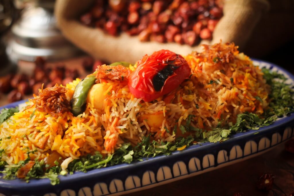Request plant-based versions of biryani (jackfruit/soy), kebabs (pea/mushroom), or salads. Iftar: dates, fruit, vegetable pakoras (air-fried/baked), daal. Family gatherings: prepare vegan sides like daal chawal or aloo bhujia.